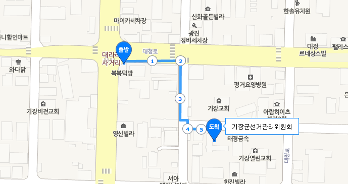- 36 : 거제역 - 기장읍사무소 하차 - 39 : 남구국민체육센터 - 기장2주공 하차 - 139 : 벡스코 - 기장종합사회복지관 하차 - 180 : 한빛3차아파트 - 기장읍사무소 하차 - 181 : 센텀시티 - 기장읍사무소 하차 - 182 : 정관 - 기장읍사무소 하차 - 183 : 부산대 - 기장2주공 하차 - 188 : 정관 - 대라리사거리 하차 - 1003(급행) : 부산대학병원 - 아름공원 하차